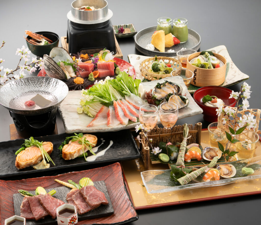希少な横手黒毛和牛の旨味をしっかり感じる最高級食材と、地元食材を活かした「プレミア会席」。