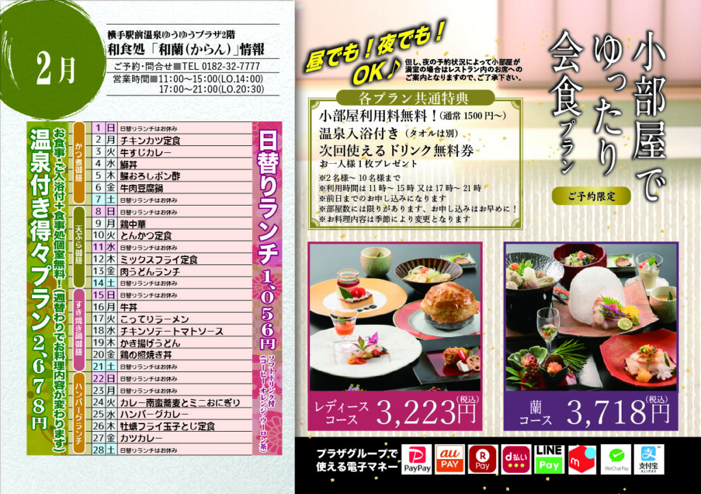 ※表示価格は全て税込です ※繁忙期等、メニューを制限させて頂く場合がございます。ご了承ください。詳しくは プラザ予約センターまでお問い合わせ下さい